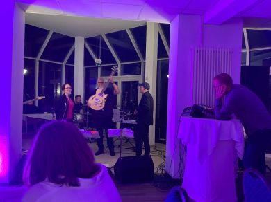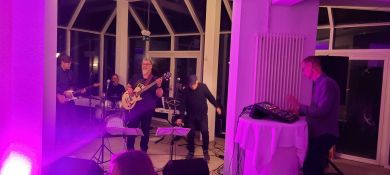 Am Samstagabend startete dann das Kerntreffen mit 41 Teilnehmenden im gebuchten Saal des HW-Hotels. Dabei waren auch vier der fünf Neulinge zugegen. Wie beim 5. Kurkindertreffen gab es nach der Büffeteröffnung einen viel umjubelten ca. 60minütigen Auftritt der Band „CoppiPlay“ ( www.coppiplay.de ), in der das Kurkind Stefan Peter-Roloff die tiefen Töne aus einem Bass entlockt und dabei auch hin und wieder singt.