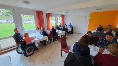 Schon etwas hungrig, haben wir uns mit dem gleichen Reisebus, der uns nach Köpenick befördert hat, wieder zurück auf dem Weg nach Berlin-Kaulsdorf gemacht. Dort erwartete uns ein kräftiges, wohlschmeckendes Mittagessen in der Gaststätte „Zum Kachelsetzer“. Und wieder wurden viele Gespräche geführt, neue Kontakte geknüpft und in Erinnerungen geschwelgt.