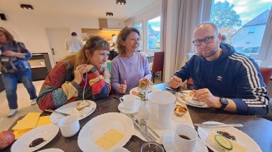 Am Sonntag, den 05.10.2025, trafen sich dann noch einmal 40 Kurkinder und Begleitungen im Hotel B1 zum ebenso traditionellen Abschiedsfrühstück. 26 der Kurkinder und deren Begleitungen waren ja im Hotel untergebracht und hatten einen sehr kurzen Weg zum Frühstücksbüffet. Wieder mit vielen Gesprächen, Austauschen von Erinnerungen und auch Umarmungen und Abschiedstränen ging dieses nachhaltig in Erinnerung bleibende 15. Kurkindertreffen in Berlin zu ende.