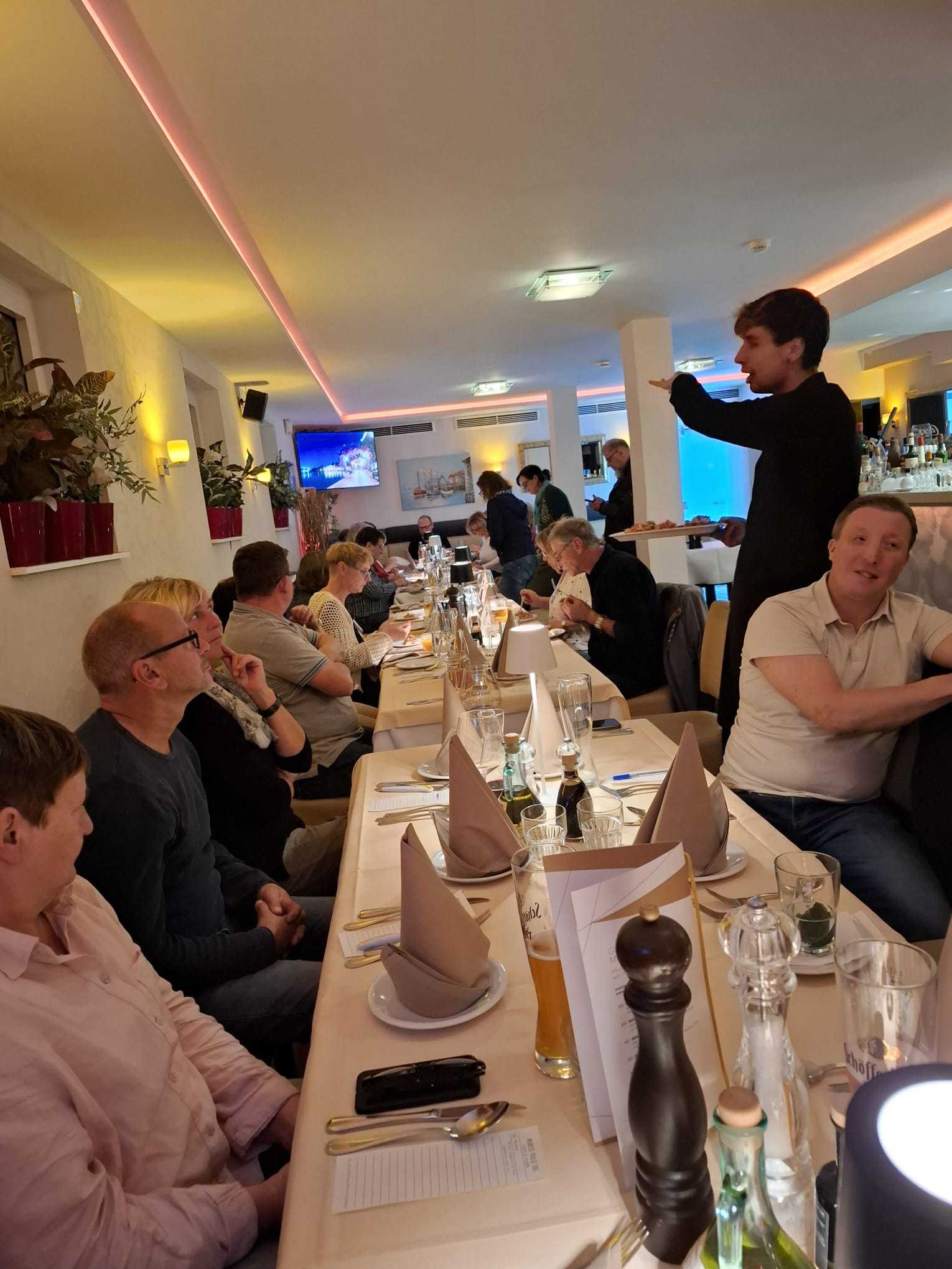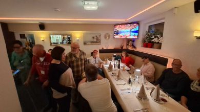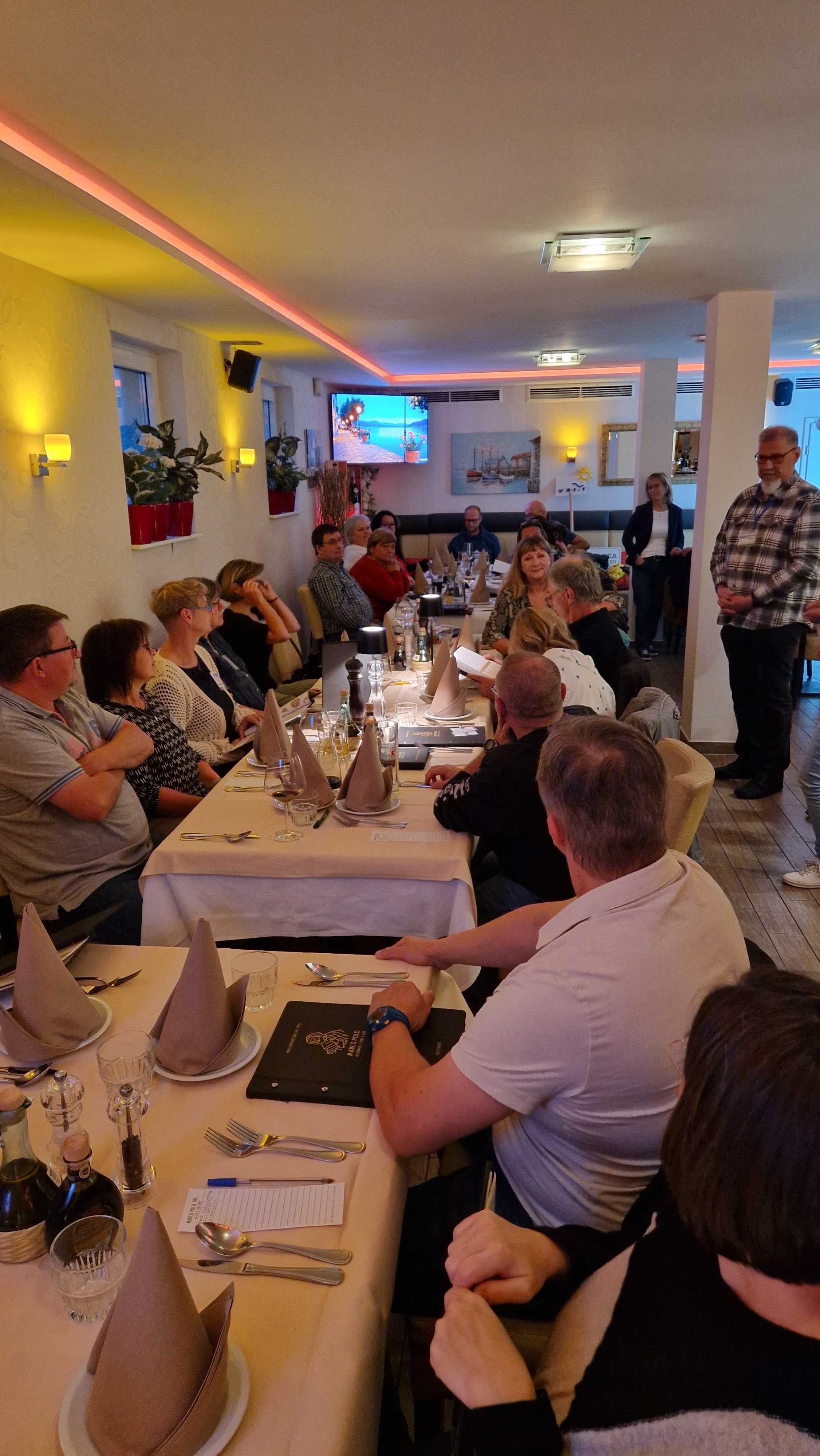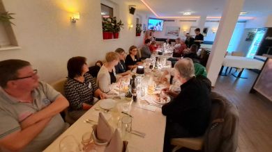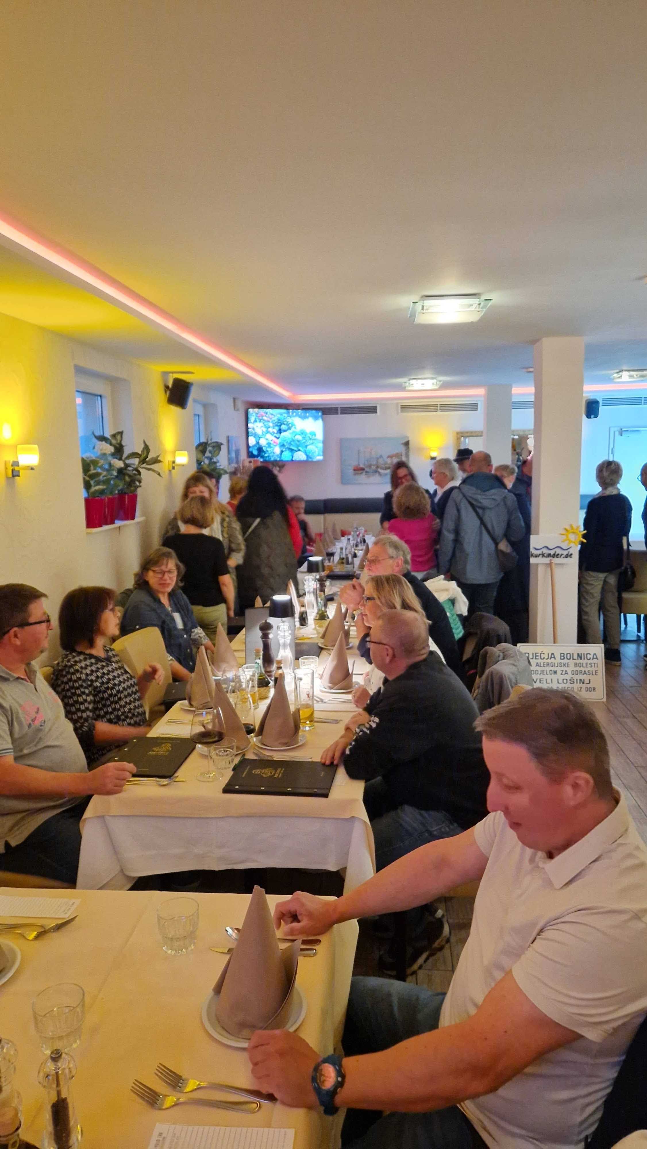 Bereits am Freitagabend (03.10.2025) trafen sich 38 Kurkinder zu einem ersten Treffen und gemeinsamen Abendessen im italienischen Lokal "Marco Polo Tre" in Berlin-Biesdorf. Da bereits vier neue Kurkinder dabei waren, haben wir gleich mit einer gemeinsamen Vorstellungsrunde begonnen und im Anschluss, in angenehmer Atmosphäre und bei mediterranen Speisen und Getränken, viele Gespräche geführt und erste Erinnerungen ausgetauscht.