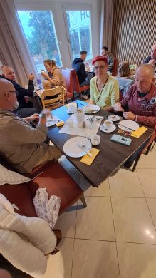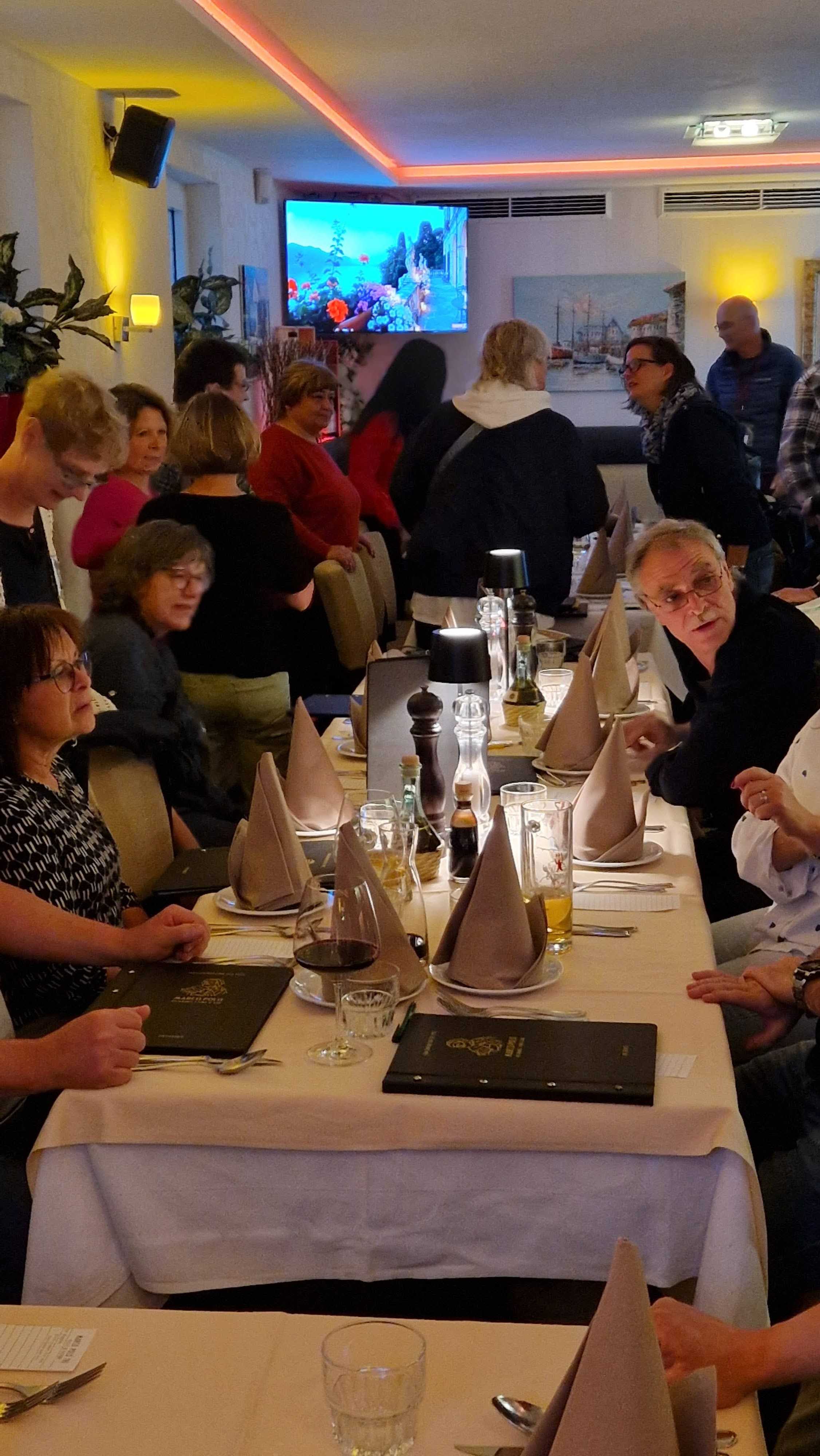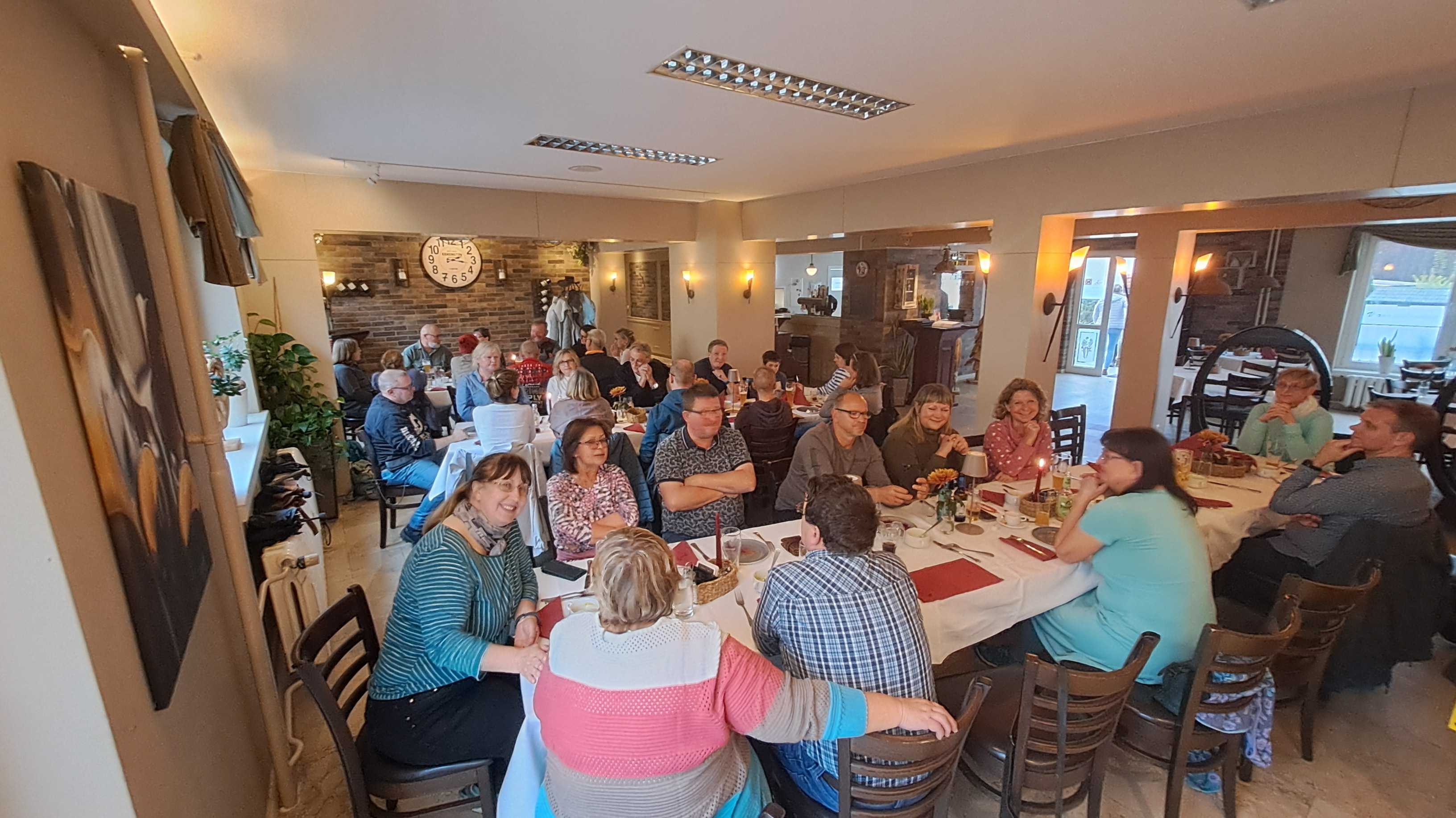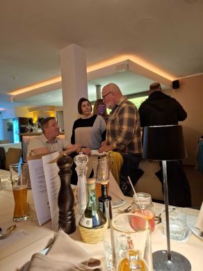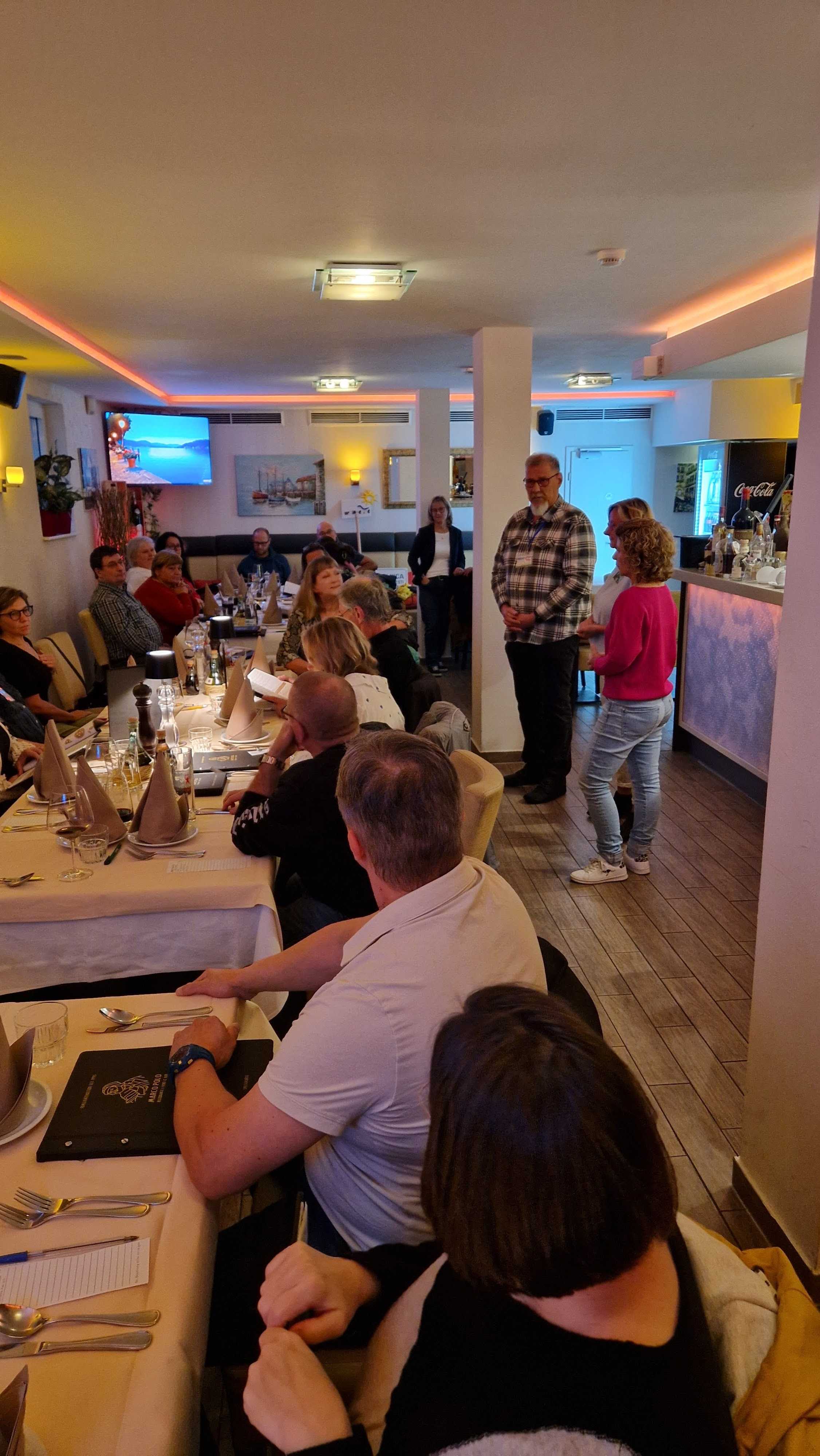 Bereits am Freitagabend (03.10.2025) trafen sich 38 Kurkinder zu einem ersten Treffen und gemeinsamen Abendessen im italienischen Lokal "Marco Polo Tre" in Berlin-Biesdorf. Da bereits vier neue Kurkinder dabei waren, haben wir gleich mit einer gemeinsamen Vorstellungsrunde begonnen und im Anschluss, in angenehmer Atmosphäre und bei mediterranen Speisen und Getränken, viele Gespräche geführt und erste Erinnerungen ausgetauscht.