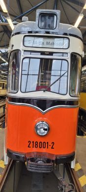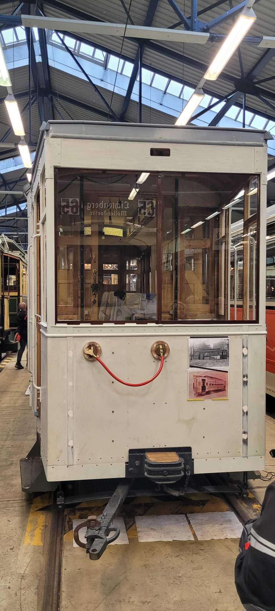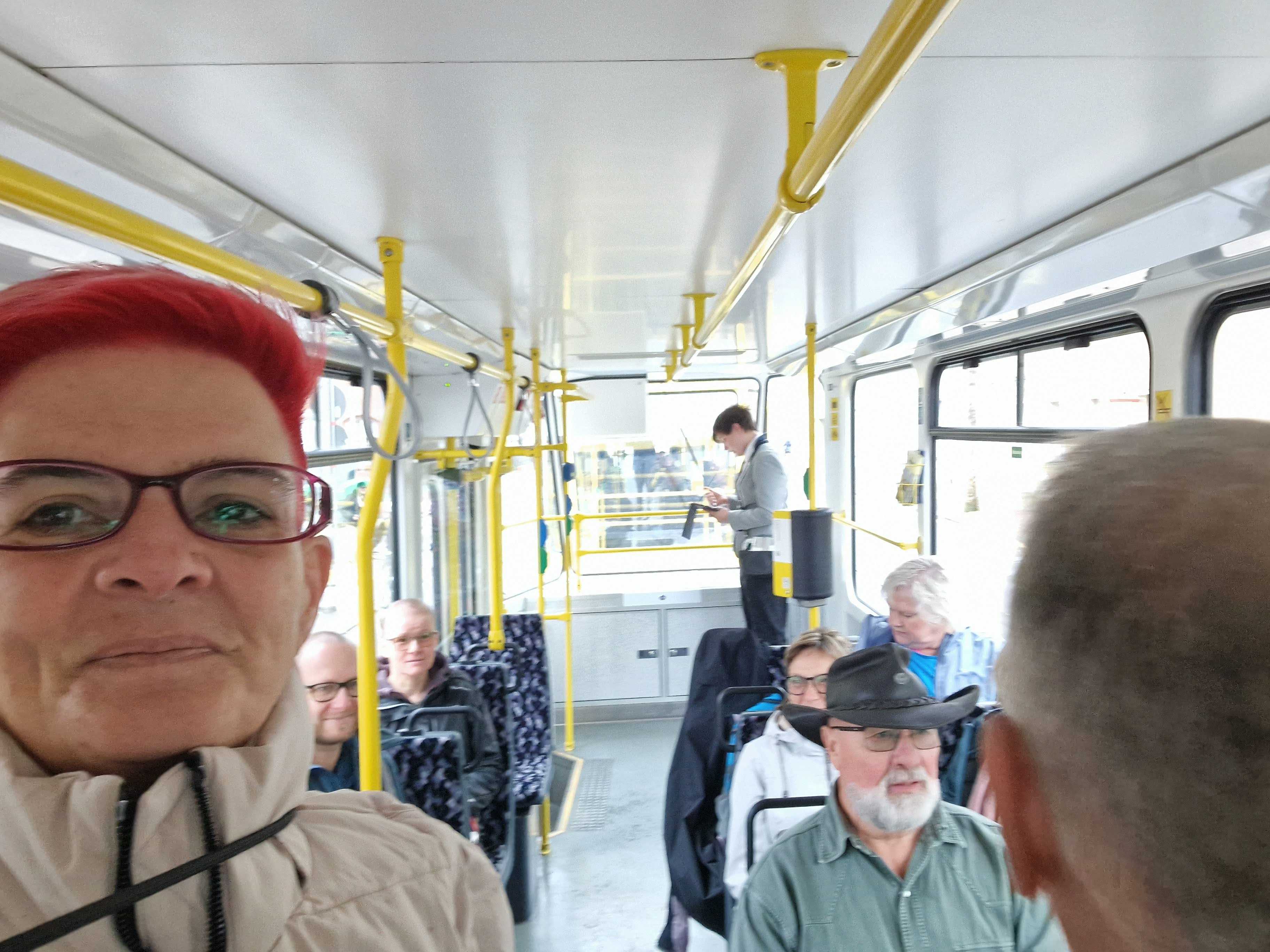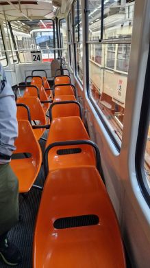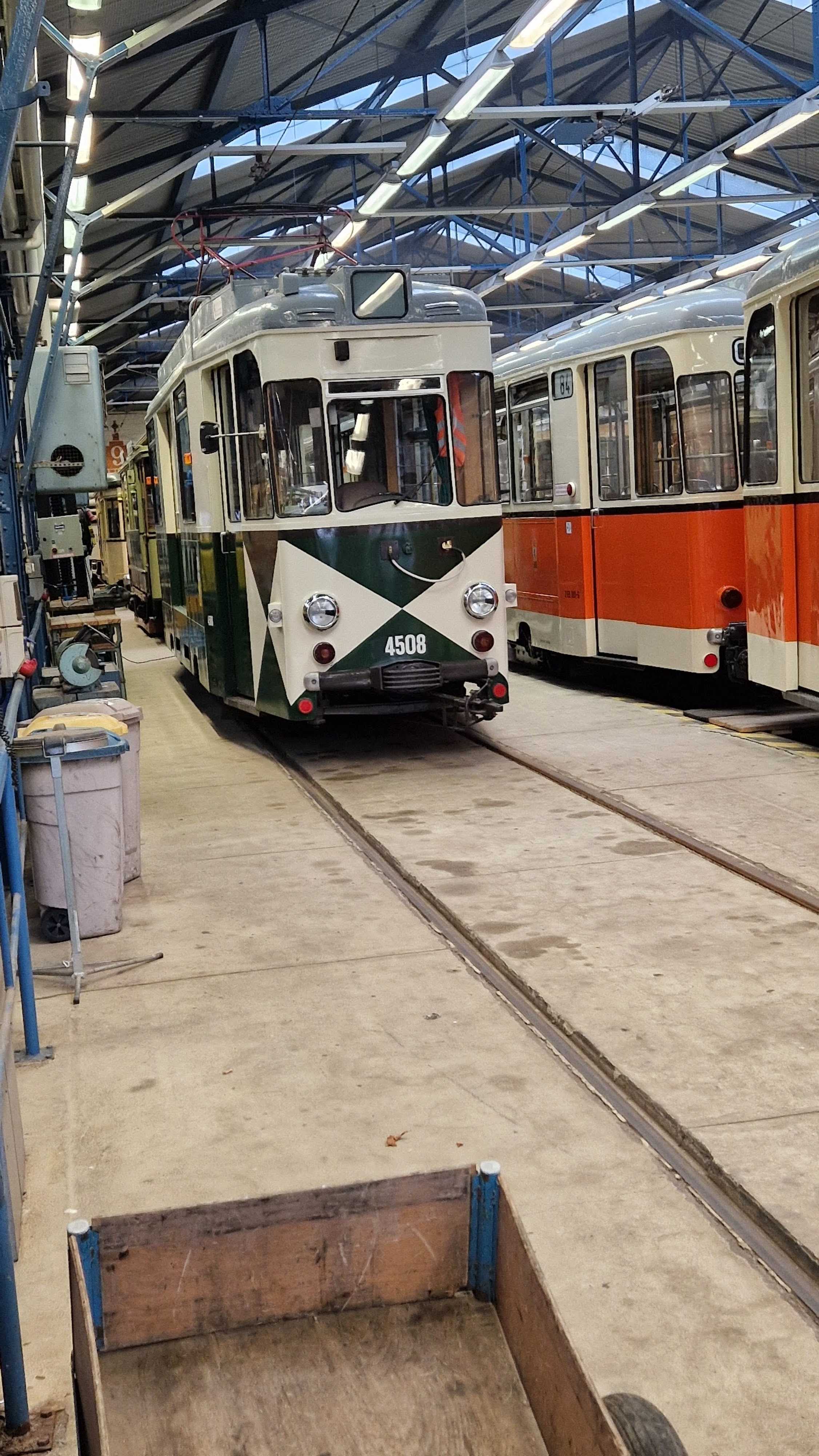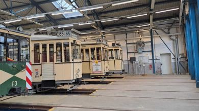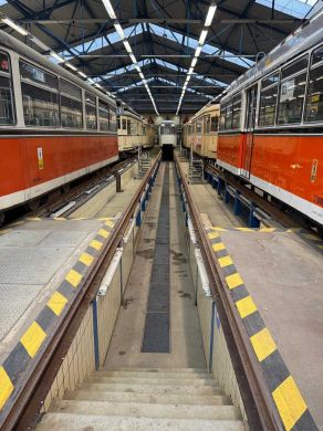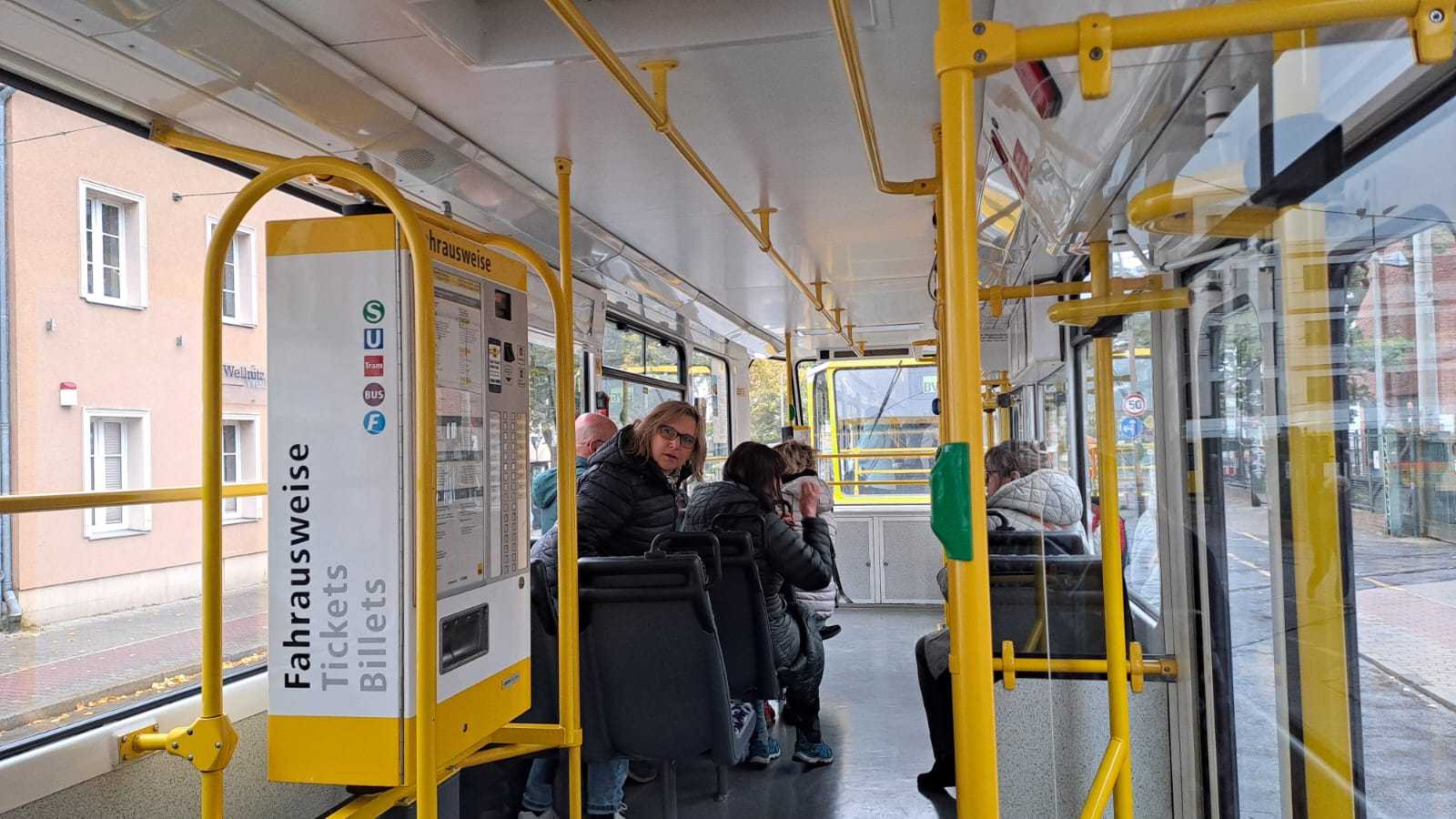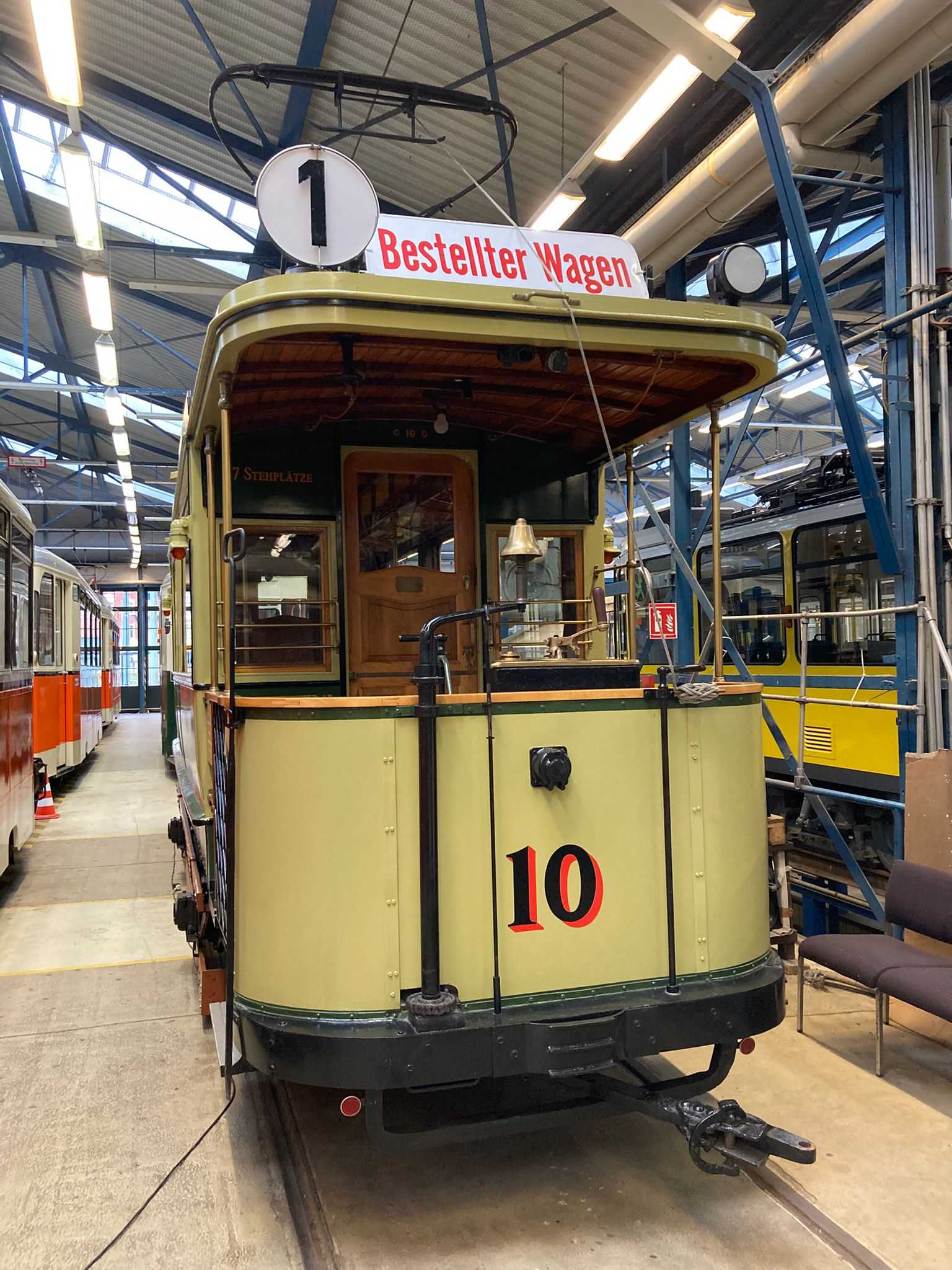 Am nächsten Vormittag (Samstag, 04.10.2025) trafen sich 35 Kurkinder und Begleitungen (davon ein neues Kurkind) vor dem HW-Hotel in Berlin-Kaulsdorf an einem Reisebus, der uns zum Straßenbahnbetriebshof Köpenick brachte. Auf dem Betriebshof Köpenick werden die historischen Straßenbahnen der Berliner Verkehrsbetriebe von ehrenamtlichen Mitarbeitern des Denkmalpflegevereins Nahverkehr gepflegt und gewartet. Dort angekommen, wurden wir von Herrn Hartmut Gröschke, ein Kollege von Kurkind Stefan Peter-Roloff und Mitglied des Vorstandes des DVN empfangen. Das große Glück war uns hold, dass wir zunächst mit der jüngsten historischen Straßenbahn, ein Tatra T6A2mod mit Beiwagen B6A2mod aus Tschechien, Baujahr 1988, Umbau in den 1990er Jahren, vom Betriebshof Köpenick nach Wendenschloß und wieder zurückfahren konnten. Im Anschluss haben wir einen tollen Einblick in mehr als 160 Jahre Straßenbahngeschichte Berlins erhalten. Unter fachkundiger Führung durch das Team der Mitarbeitenden beim DVN dürften wir bis ins Detail den Fahrzeugpark bis hin zu den neuesten Fahrzeugen besichtigen. Es war ein MockUp-Model der neuesten Berliner Straßenbahn zu sehen, der Urbanliner (kurz UBL), von denen bisher 4 Fahrzeuge geliefert worden sind, derzeit getestet werden und etwa zum Jahresende 2025 in den Linienbetrieb überführt werden sollen.