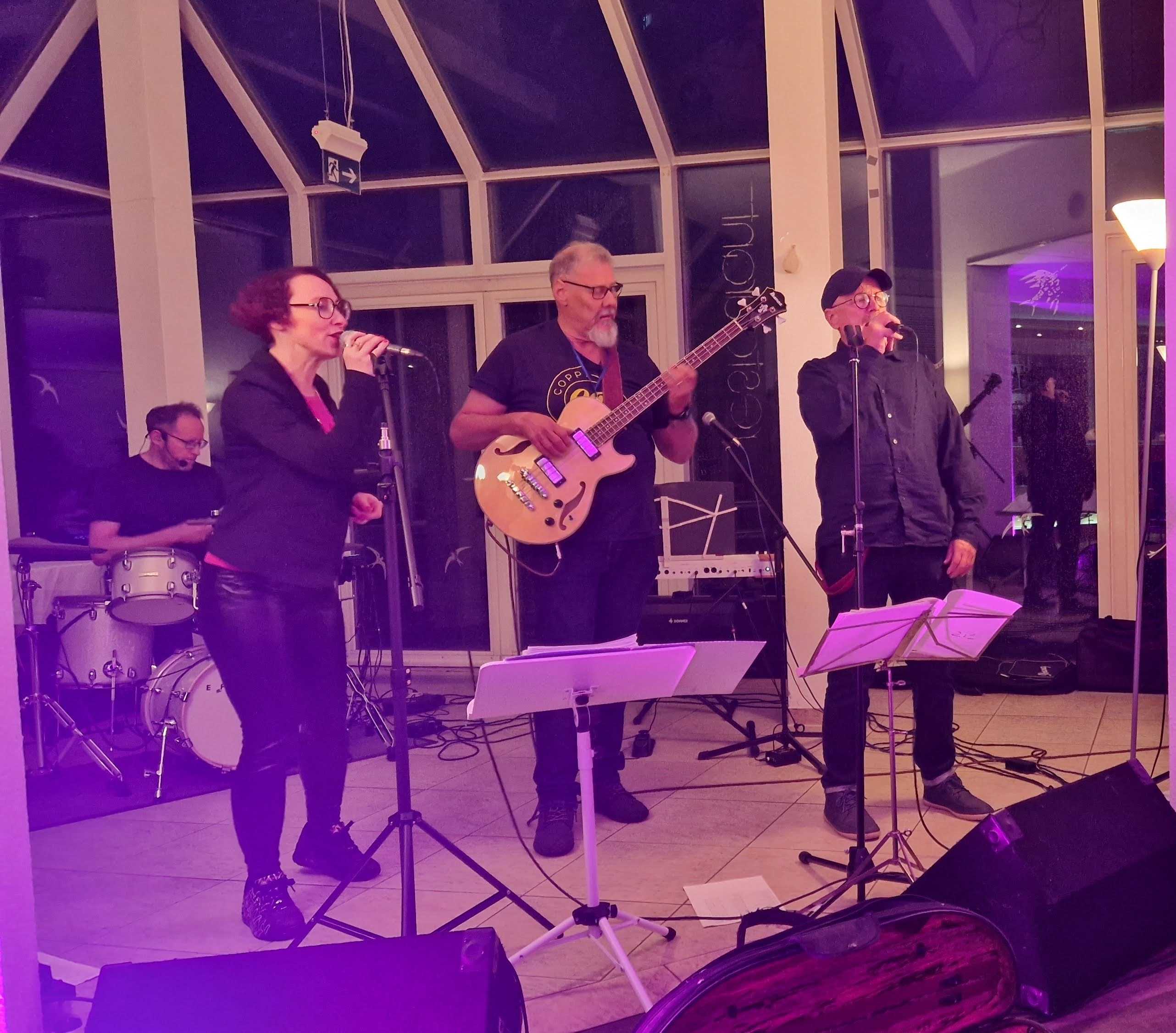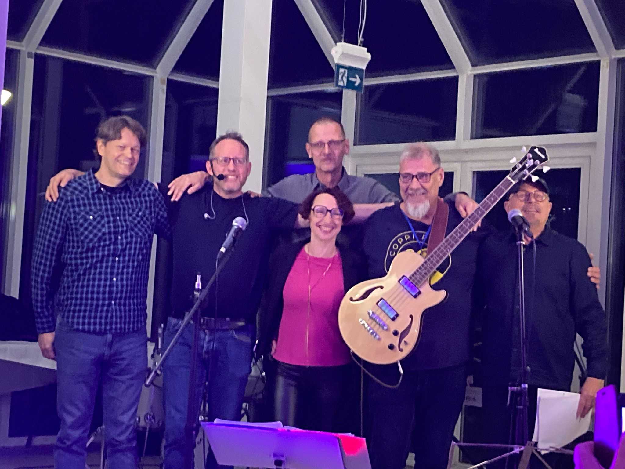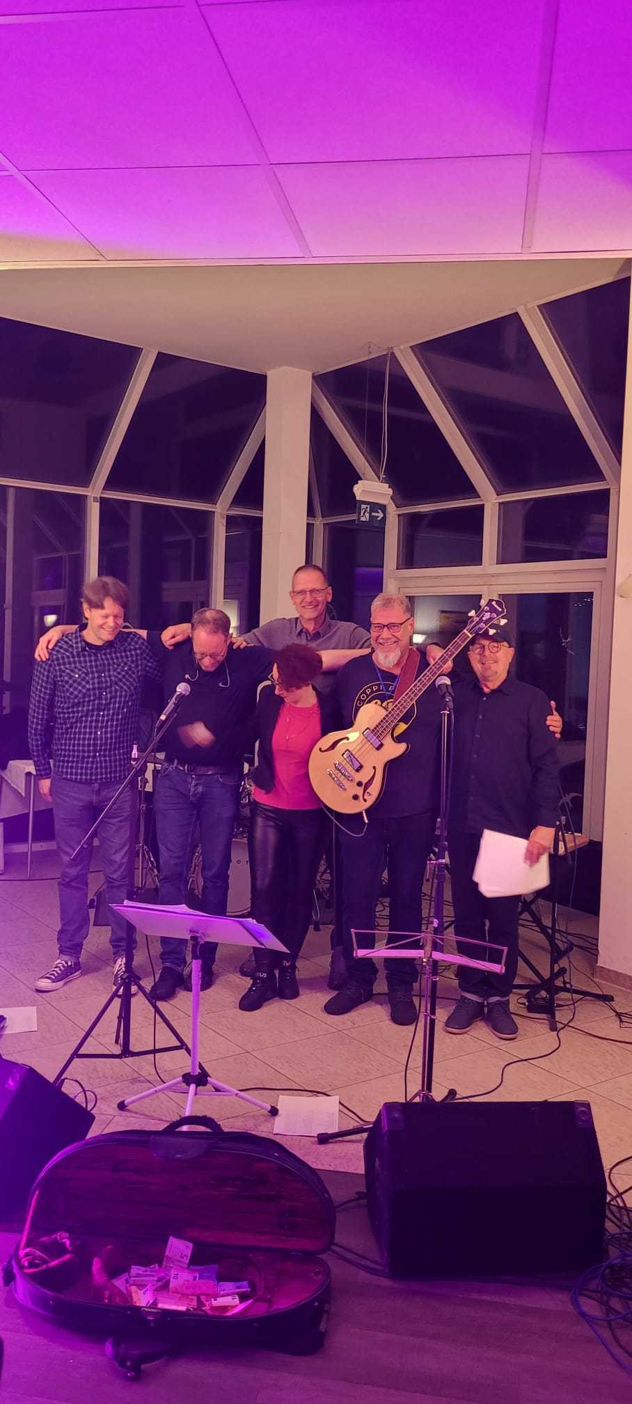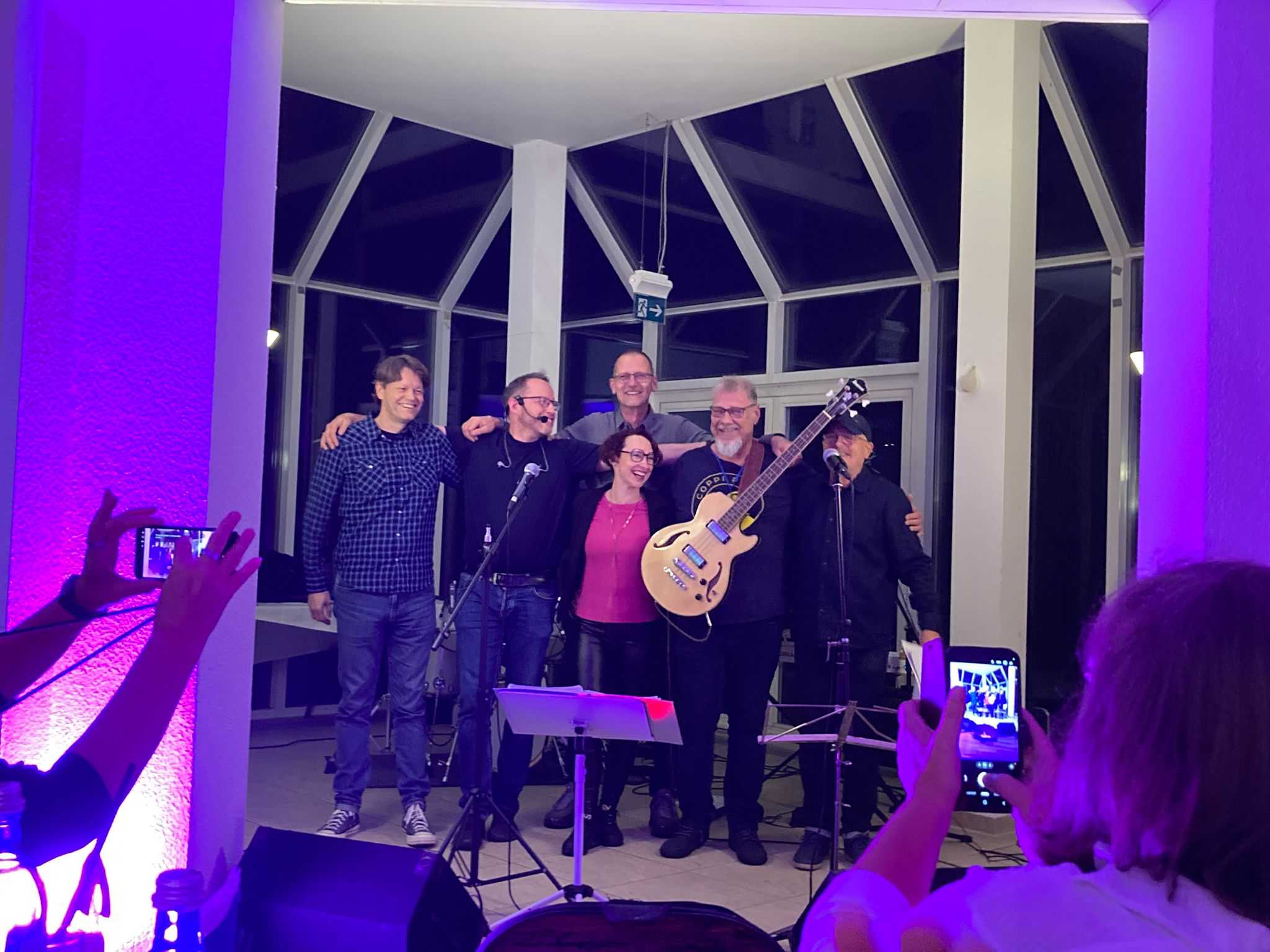 Am Samstagabend startete dann das Kerntreffen mit 41 Teilnehmenden im gebuchten Saal des HW-Hotels. Dabei waren auch vier der fünf Neulinge zugegen. Wie beim 5. Kurkindertreffen gab es nach der Büffeteröffnung einen viel umjubelten ca. 60minütigen Auftritt der Band „CoppiPlay“ ( www.coppiplay.de ), in der das Kurkind Stefan Peter-Roloff die tiefen Töne aus einem Bass entlockt und dabei auch hin und wieder singt.