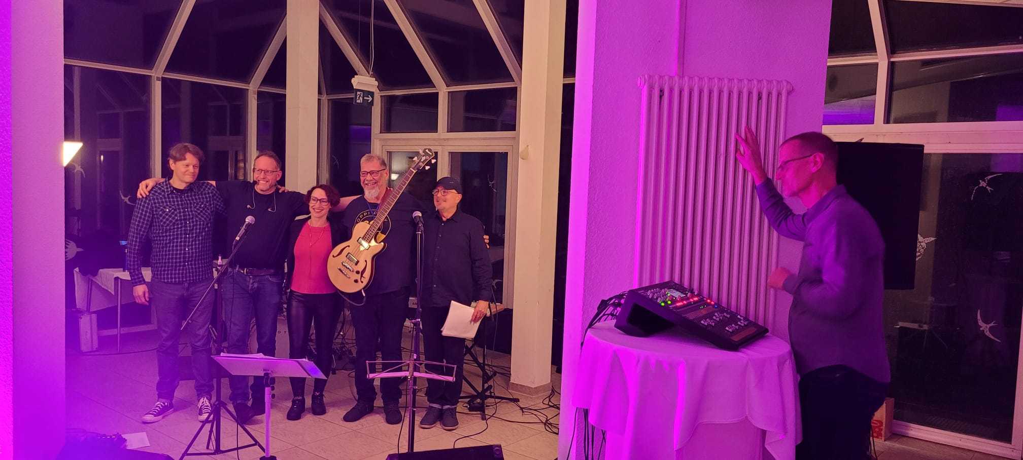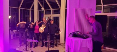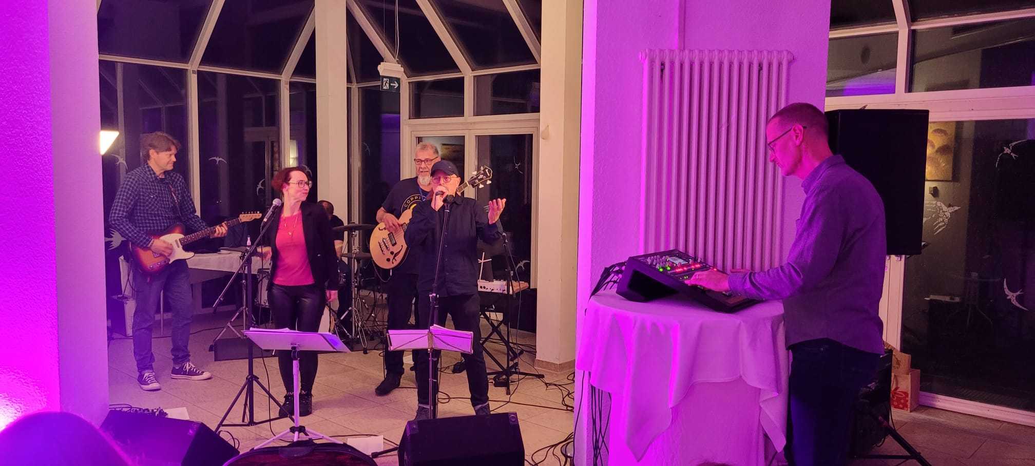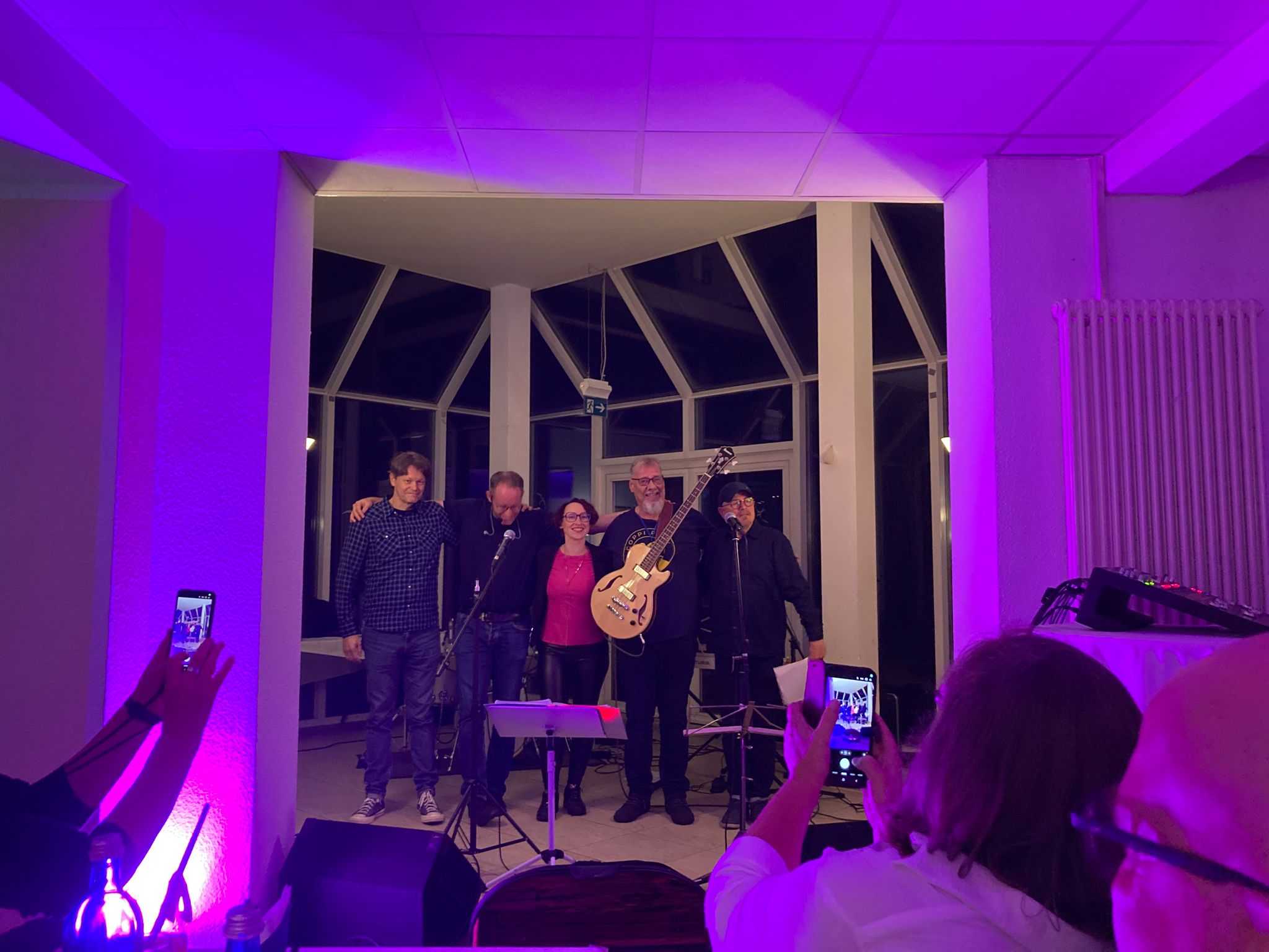 Am Samstagabend startete dann das Kerntreffen mit 41 Teilnehmenden im gebuchten Saal des HW-Hotels. Dabei waren auch vier der fünf Neulinge zugegen. Wie beim 5. Kurkindertreffen gab es nach der Büffeteröffnung einen viel umjubelten ca. 60minütigen Auftritt der Band „CoppiPlay“ ( www.coppiplay.de ), in der das Kurkind Stefan Peter-Roloff die tiefen Töne aus einem Bass entlockt und dabei auch hin und wieder singt.