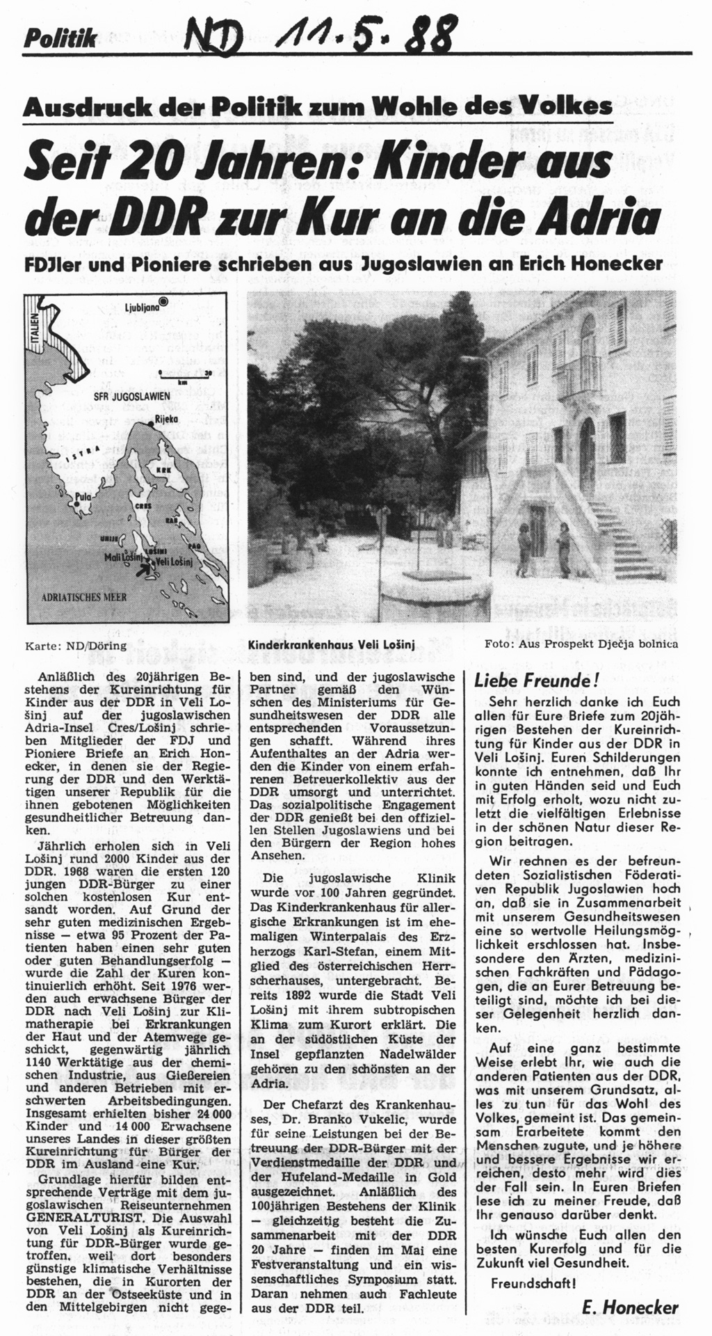 ... mit einem Grußwort von Erich Honecker an die Kurkinder