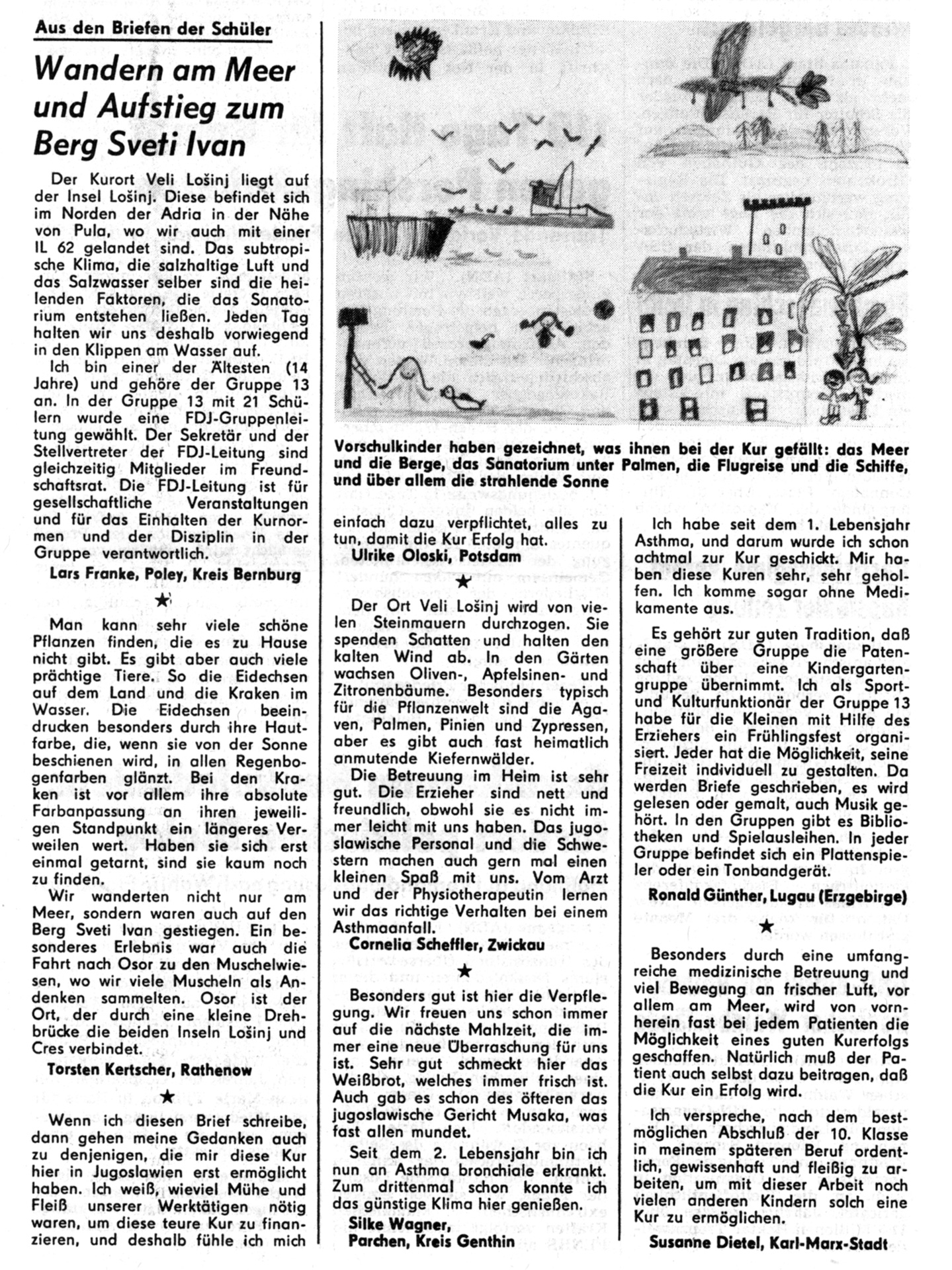 Aus den Briefen der Schüler (ehemalige Kurkinder in Veli Lošinj)
